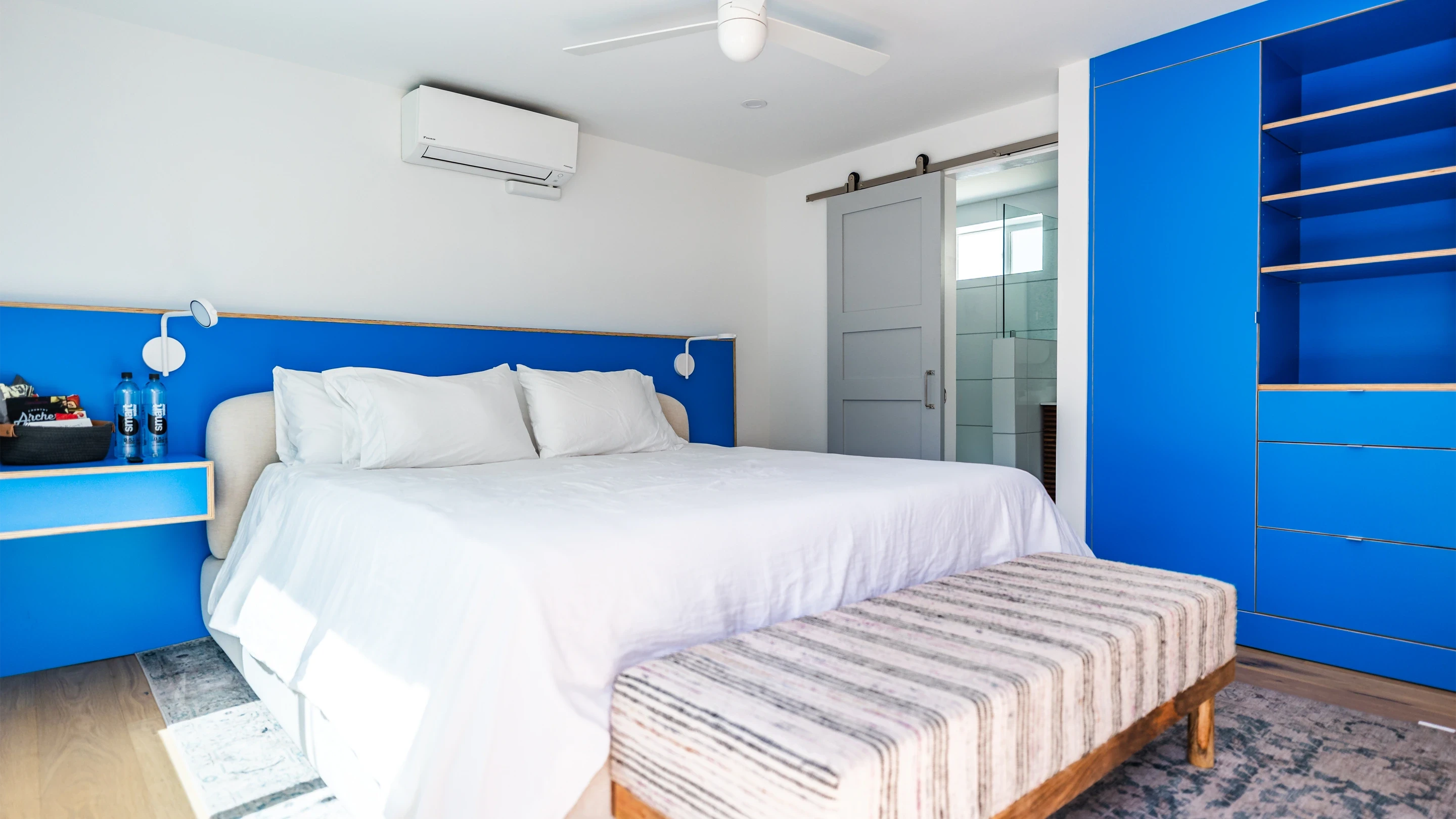 Enjoy a large walk-in shower, Smart TV / WIFI, a comfortable (and luxurious) King-sized bed, Climate Control, in-suite amenities, and more.